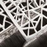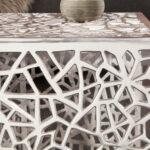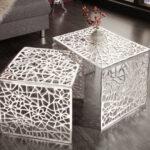 Dvojna miza iz aluminija in kovinskih zlitin, katerih vdolbine so ročno brušene, bo v vaši dnevni sobi pustila vtis razkošja.
