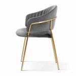 Izjemno udoben in na dotik prijeten stol sodobnih linij izdelan iz prekrasnega žameta, tanke kovinske noge pa prispevajo k njegovi eleganci.