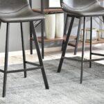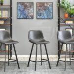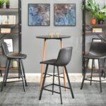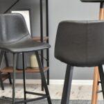 Barski stol izjemnega udobja, izdelan iz eko usnja u vintage slogu, s kovinskimi nogami črne barve.