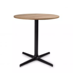 Ta okrogla miza je za notranjo uporabo. Podnožje mize je izdelano iz barvanega aluminija, mizna plošča pa iz melamina – dvojnega furnirja z učinkom lesa.