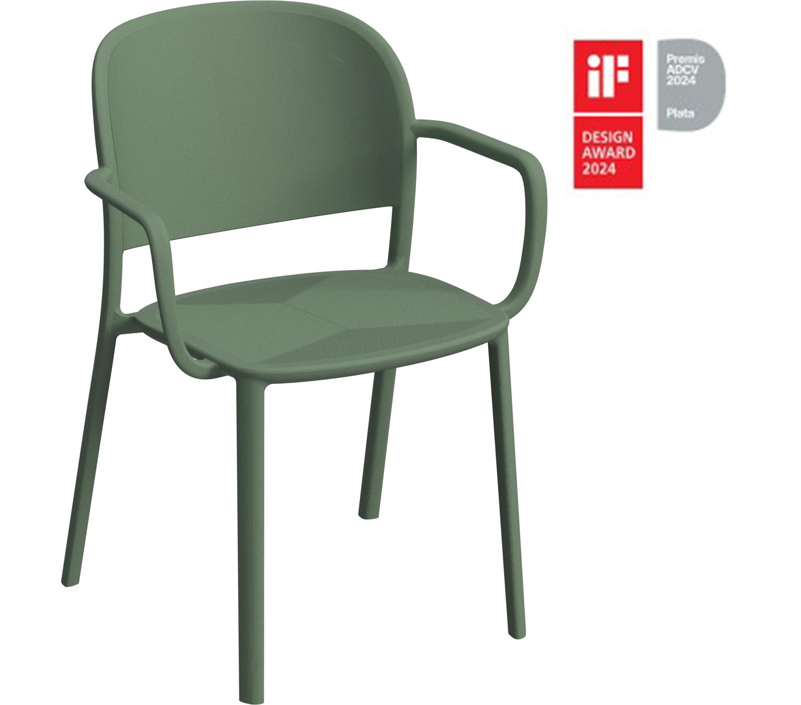 Eleganten in udoben stol v več odtenkih. Oblikoval ga je Yonoh Creative Studio in je tako osvojil številne prestižne nagrade, vključno z iF Design 2024. Zaradi enostavnega vzdrževanja in skladiščenja, UV zaščite, ki ščiti pred sončnimi žarki, ter materiala, ki je odporen na različne vremenske vplive, je zelo primeren za gostinske objekte, moderne terase in jedilnice.