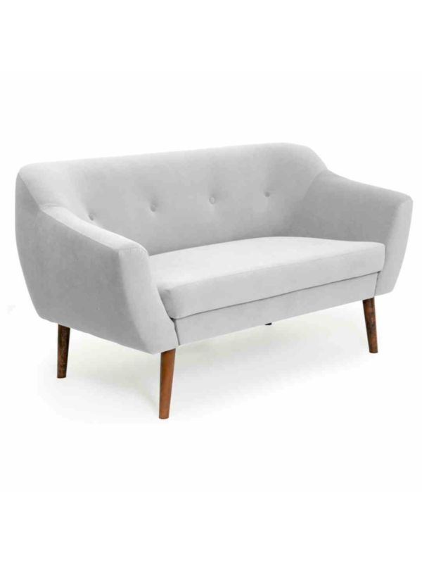 Lepa in udobna klop z lesenimi nogami in različnimi barvami blaga v ponudbi.