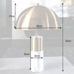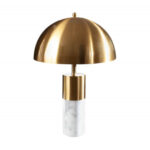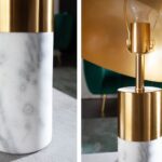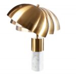 Burlesque namizna svetilka z višino 52 cm bo v vaš prostor vnesla pridih ‘zlate dobe’. Kovinsko, gobasto strukturo stabiluje stojalo iz pravega marmorja premera 10 cm v lisasto beli barvi. Svetilka je na voljo v črni in sivi različici, s črnim in sivim marmornim podstavkom.