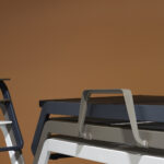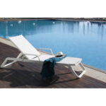 Izvedba ležalnika VILA z naslonjali za roke. Izstopa po svoji preprostosti in praktičnosti. Njeno hrbtišče je nastavljivo v 5 položajev. Je zelo odporen in na voljo v več odtenkih. Njegova konstrukcija je izdelana iz aluminija in polipropilena, sama postelja pa je iz tkanine Phifertex®. Ta ležalnik vam nudi izjemno udobje in omogoča uživanje v naravi ali ob bazenu.