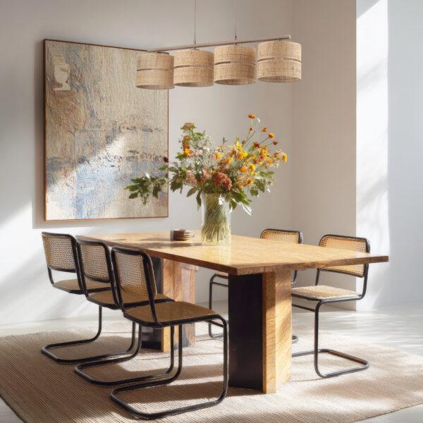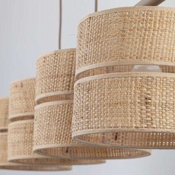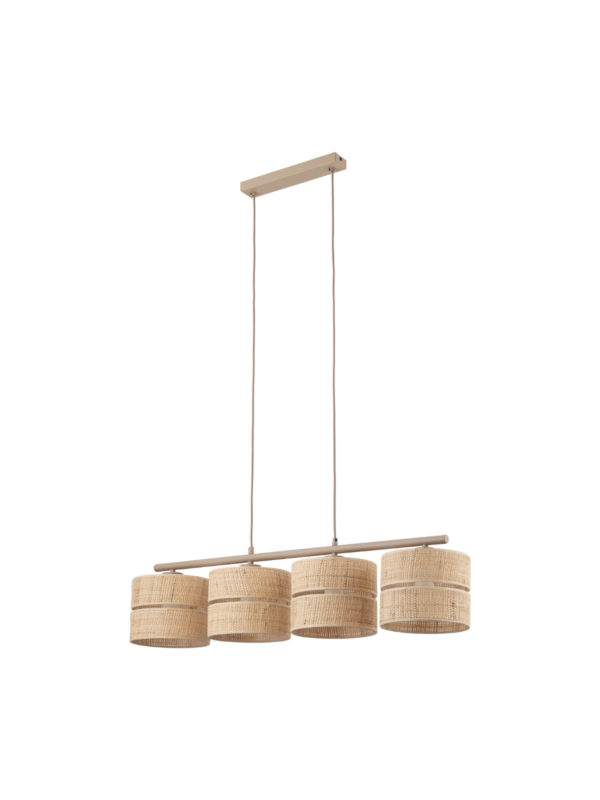 Viseča svetilka Altura poudarja umirjeno obliko in naravno teksturo. Senčnik v barvi rafije doda notranjosti vizualno toplino in zagotavlja prijetno svetlobo, idealno za prostore, kjer je vzdušje pomembno: dnevne sobe, jedilnice in spalnice.