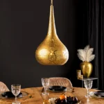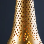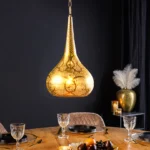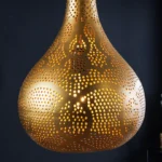 Viseča svetilka Irakli bo v vaš dom vnesla pridih orientalskega pridiha. Oblika solze in nežen vzorec perforiranih lukenj dajeta svetilki edinstven videz, zlata železna površina pa ustvarja topel in vabljiv sijaj. Vsaka svetilka je ročno izdelana, zaradi česar je resnično edinstvena in impresivna zaradi visokokakovostne izdelave.
