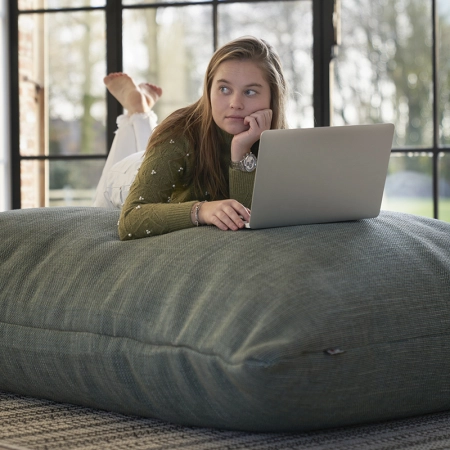 Zahvaljujoč robustni strukturi iz 100 % tanko predenega polipropilena, stabiliziranega proti UV-žarkom, je tkanina odporna tako na sonce kot na dež. Struktura tkanine je zelo gosta in trpežna. Ta vreča za sedenje z visokokakovostnim EPS polnilom je ergonomska in udobna, saj se prilagaja gibom vašega telesa.