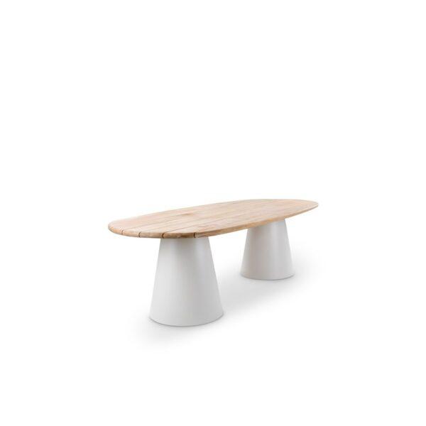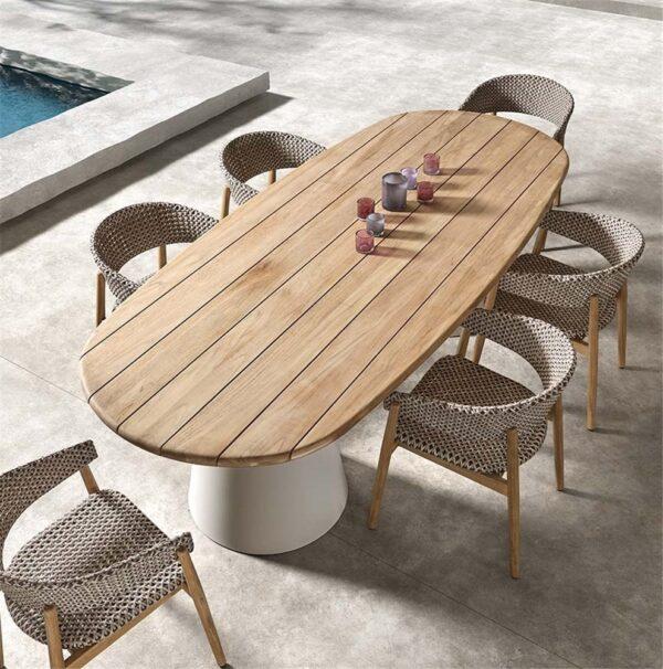 Ta miza združuje toplo eleganco tikovine z modernim videzom aluminijastih nog v prefinjeni peščeni barvi. Zaradi elegantne oblike in visokokakovostnih materialov je vsestranska izbira za vse zunanje prostore. Popolno ravnovesje med stilom in vzdržljivostjo.
