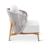 Kolekcija Gabor izžareva eleganco in prefinjenost s svojo edinstveno mešanico tikovine in tkanih detajlov. Stol in fotelj imata čudovito ukrivljeno naslonjalo iz tikovine, ki dodaja eleganten in sodoben pridih. Brezčasne zunanje blazine v barvi gline zagotavljajo vrhunsko udobje in vzdržljivost.
