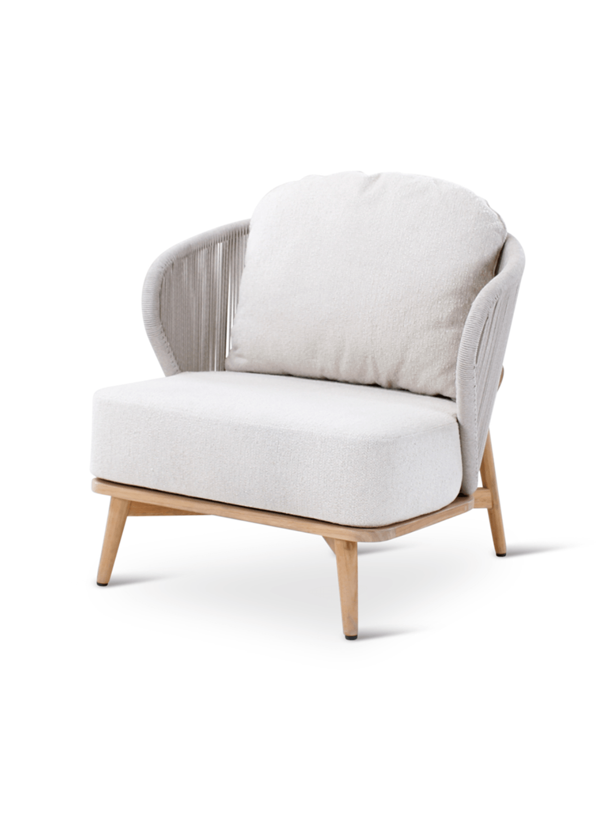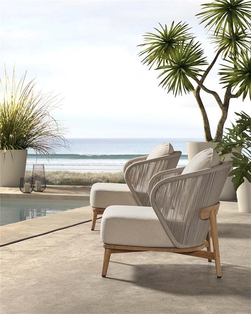 Kolekcija Gabor izžareva eleganco in prefinjenost s svojo edinstveno mešanico tikovine in tkanih detajlov. Stol in fotelj imata čudovito ukrivljeno naslonjalo iz tikovine, ki dodaja eleganten in sodoben pridih. Brezčasne zunanje blazine v barvi gline zagotavljajo vrhunsko udobje in vzdržljivost.