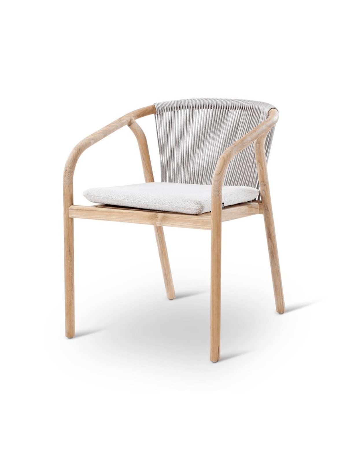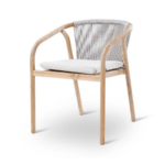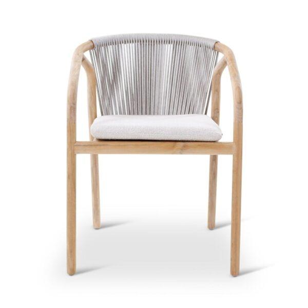 Vrtni stol Boras bo čudovit dodatek vašemu zunanjemu prostoru s svojim tikovim okvirjem in sivim protjastim naslonjalom, vključno z udobno blazino v barvi gline. Blago je zelo trpežno, izdelano iz tkanine Vaadhoo, odporne na sončenje za uporabo na prostem.