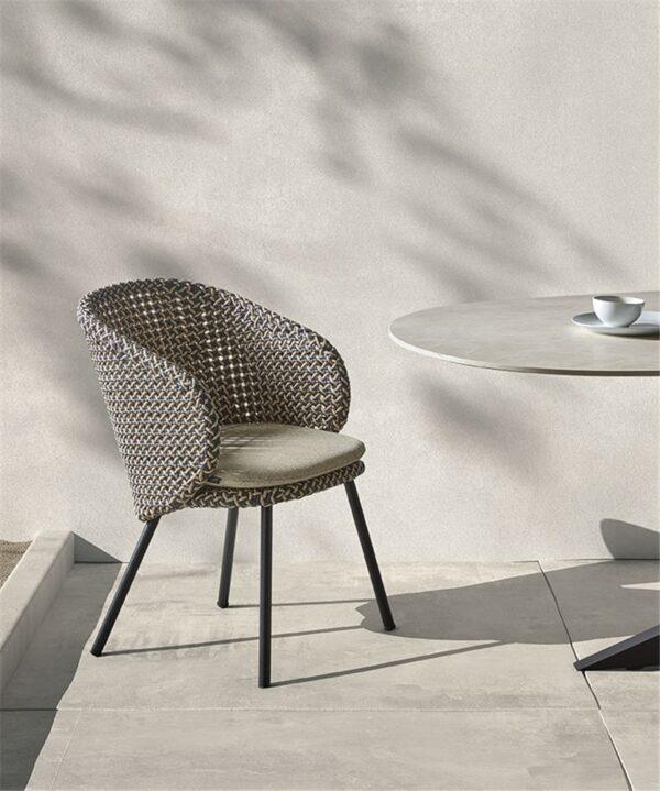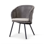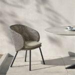 Kolekcija Modesto ponuja popolno kombinacijo udobja in razkošja za bivanje na prostem. Stoli so oblazinjeni v tkanino ostrigaste barve, kremne blazine pa ustvarjajo prefinjen kontrast in hkrati nudijo vrhunsko udobje. Tako blago kot polnilo sta izdelana iz visokokakovostnih materialov za uporabo na prostem, zaradi česar so ti stoli odporni na vremenske vplive in vzdržljivi, ne da bi pri tem ogrozili mehkobo in slog.