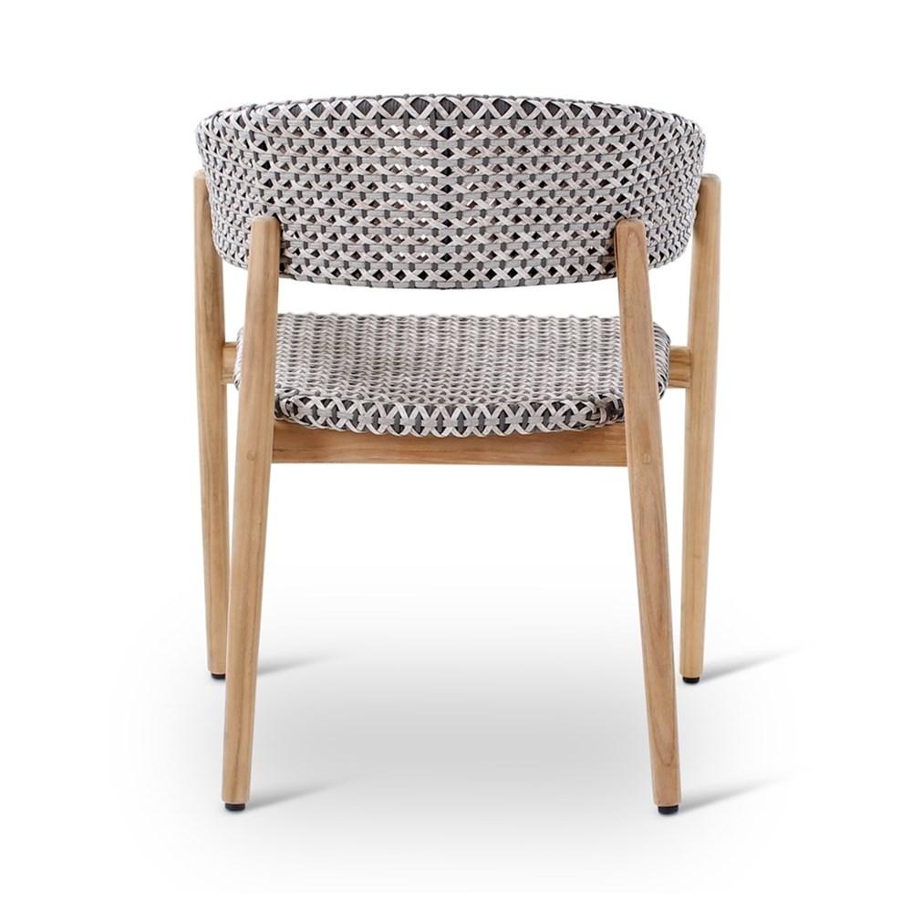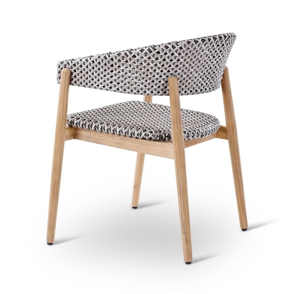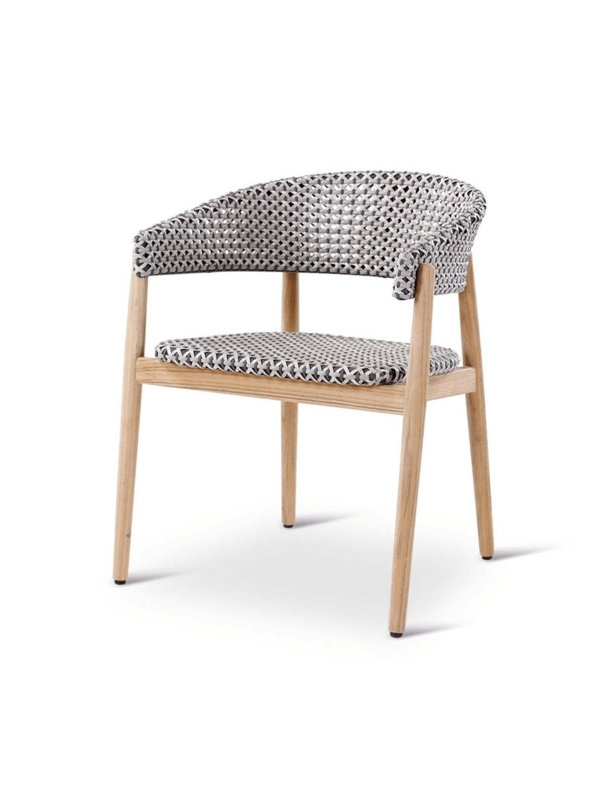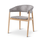 Ti elegantni stoli združujejo masivno ogrodje iz tikovine s sedežem iz visokokakovostnega tkanega materiala. Na voljo so kot standardni stol ali fotelj ter ponujajo vsestranskost in udobje za vsak zunanji prostor. Popolna mešanica naravne izdelave in sodobnega dizajna.