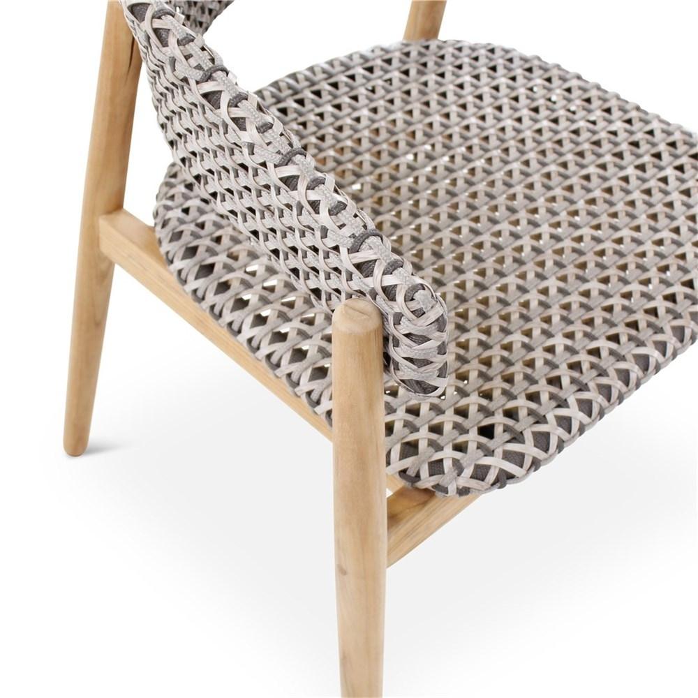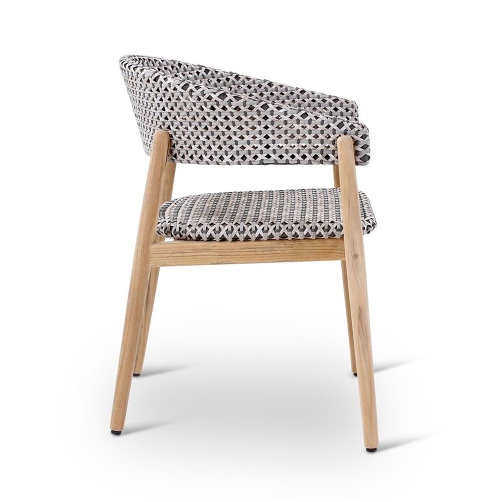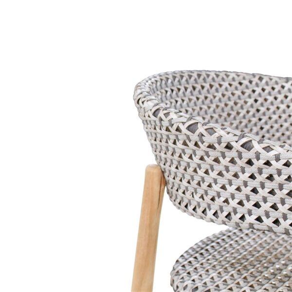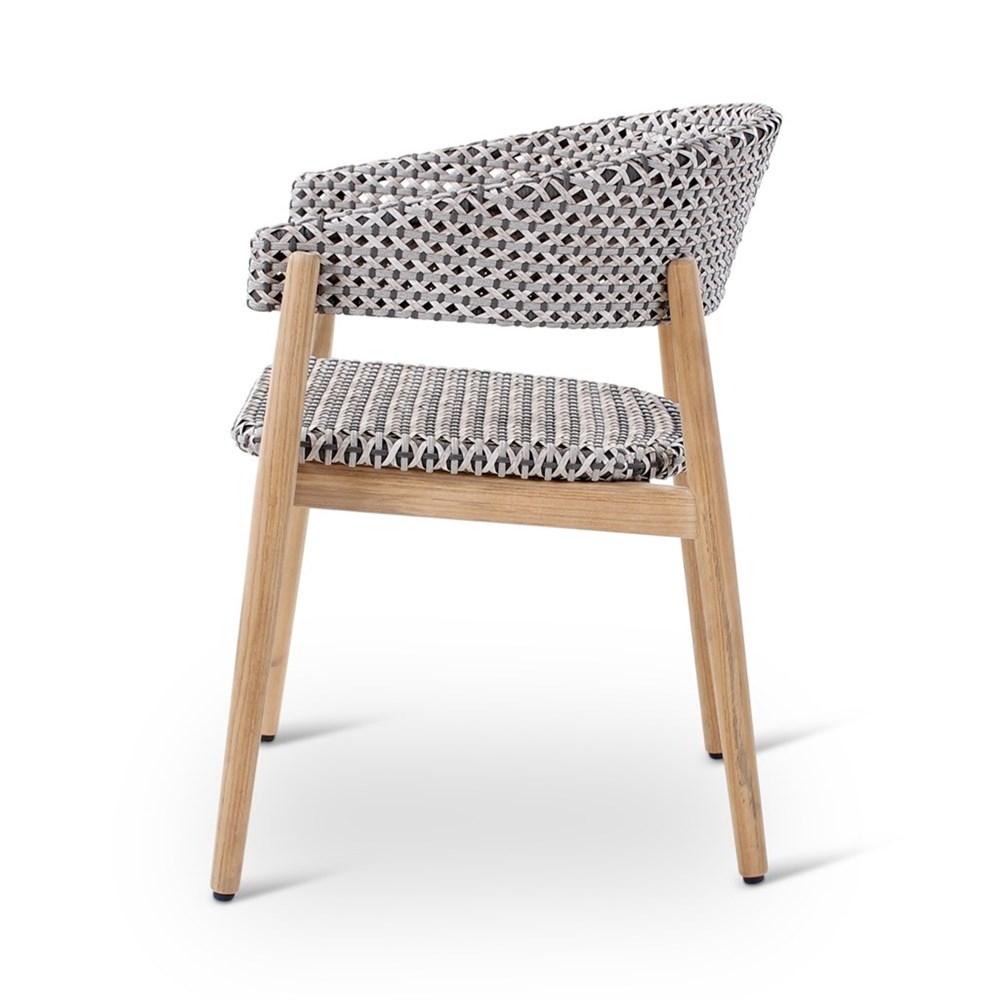 Ti elegantni stoli združujejo masivno ogrodje iz tikovine s sedežem iz visokokakovostnega tkanega materiala. Na voljo so kot standardni stol ali fotelj ter ponujajo vsestranskost in udobje za vsak zunanji prostor. Popolna mešanica naravne izdelave in sodobnega dizajna.