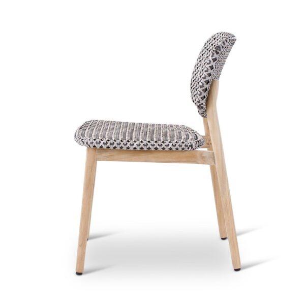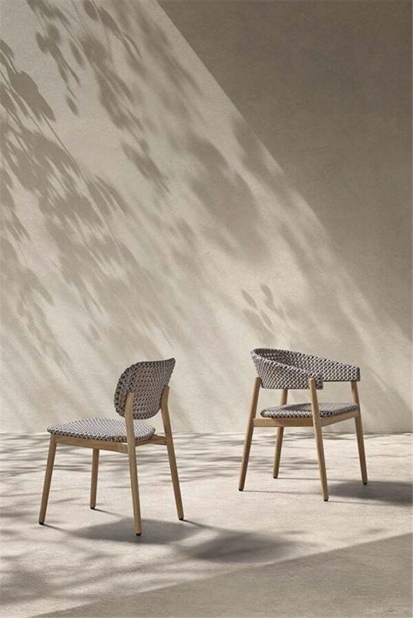 Ti elegantni stoli združujejo masivno ogrodje iz tikovine s sedežem iz visokokakovostnega tkanega materiala. Na voljo so kot standardni stol ali fotelj ter ponujajo vsestranskost in udobje za vsak zunanji prostor. Popolna mešanica naravne izdelave in sodobnega dizajna.