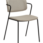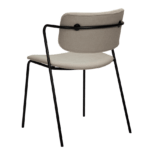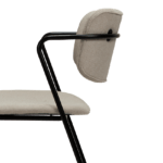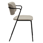 Stol s tankimi črnimi kovinskimi nogami deluje skoraj lebdeče. Stol, ki ga navdihujejo klasični stoli iz 50-ih, združuje čiste linije z mehkim videzom, kar mu daje sodoben občutek. Naslonjalo in sedež sta prekrita z blagom bež barve.