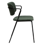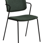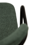 Stol s tankimi črnimi kovinskimi nogami deluje skoraj lebdeče. Stol, ki ga navdihujejo klasični stoli iz 50-ih, združuje čiste linije z mehkim videzom, kar mu daje sodoben občutek. Naslonjalo in sedež sta prekrita z zeleno tkanino.