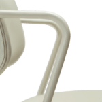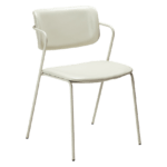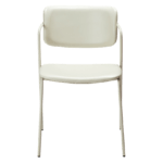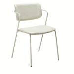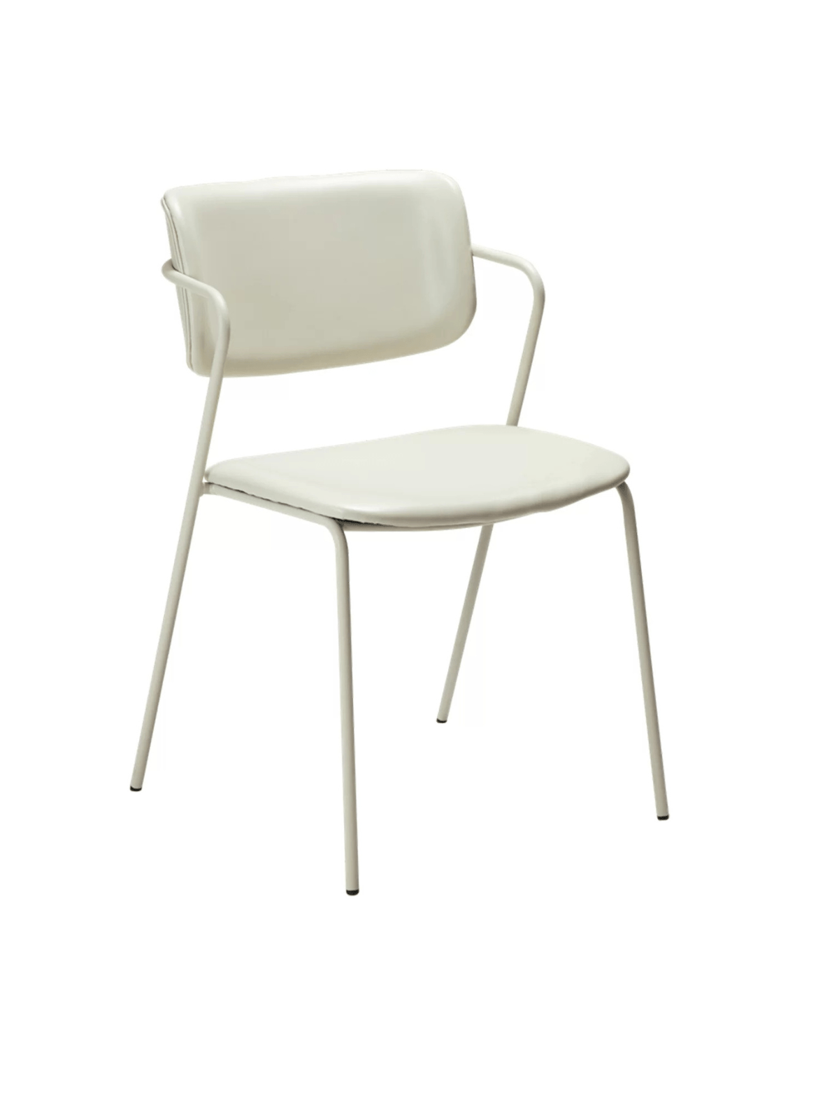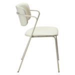 Stol s tankimi belimi kovinskimi nogami deluje skoraj lebdeče. Stol, ki ga navdihujejo klasični stoli iz 50-ih, združuje čiste linije z mehkim videzom, kar mu daje sodoben občutek. Naslonjalo in sedež sta oblazinjena v belo eko usnje.
