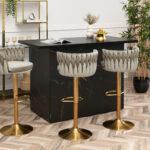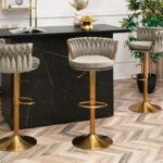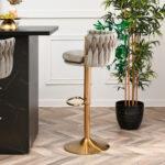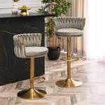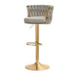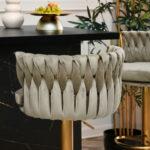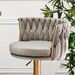 Barski stol Zoe je na voljo v kombinaciji z okroglim vrtljivim podstavkom, ki je nastavljiv tudi po višini. Sedišče barskega stola Zoe je izdelano iz pletenega žameta in je na voljo v več barvah.