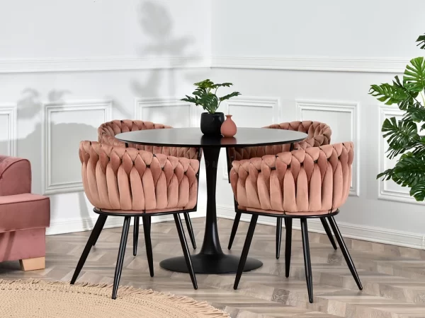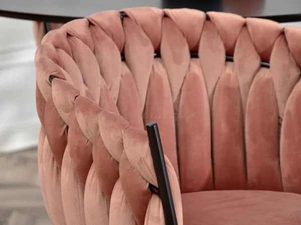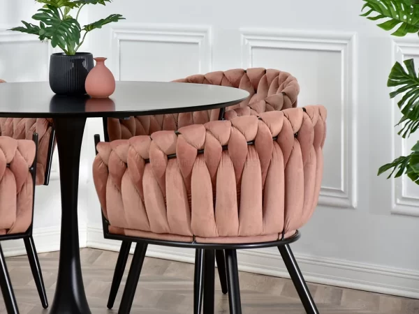 Oblazinjen stol Zoe navdušuje že nekaj sezon. Pletenice, nameščene na črnem okvirju, naredijo izdelek vizualno privlačen in primeren za na primer boho in skandinavski stil. Tkanino Magic Velvet odlikuje enostavno vzdrževanje ter visoka odpornost proti ognju, obrabi in praskam. Povežite osnovo s sedežem z vijaki, ki so priloženi kompletu. Pleteni stol smo opremili tudi z nogami, ki ščitijo tla pred praskami.