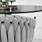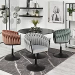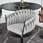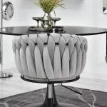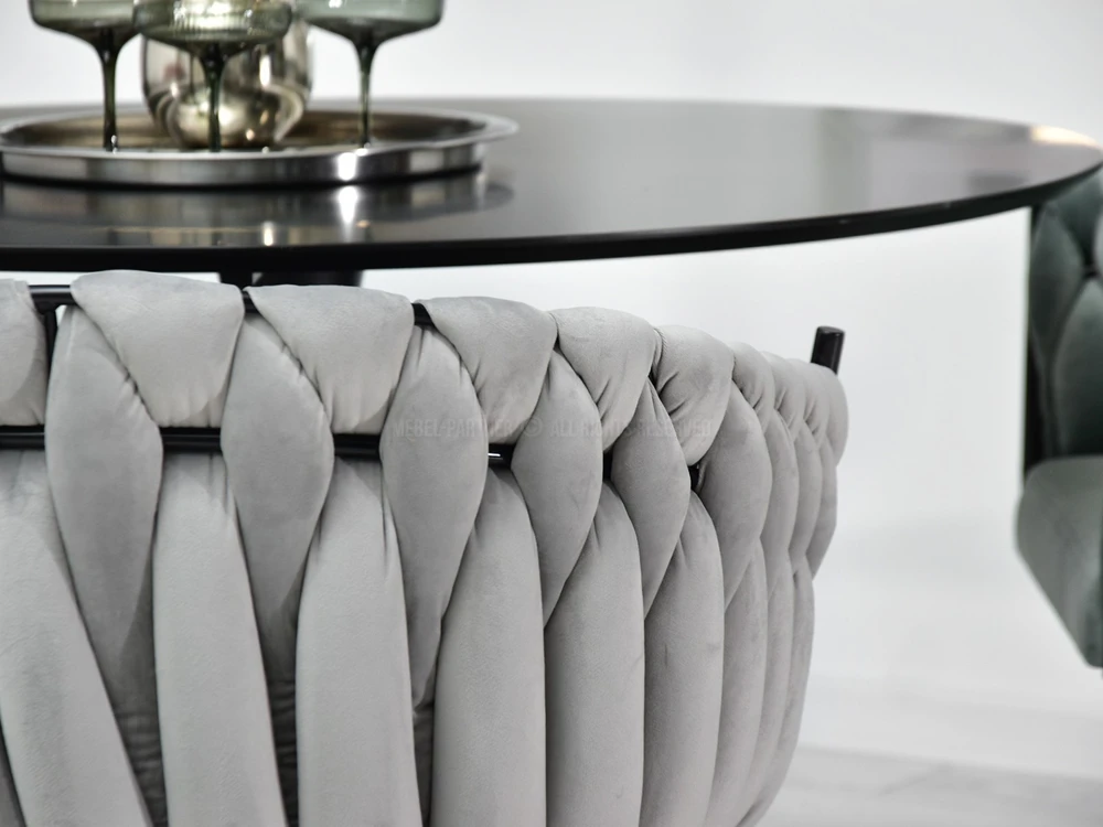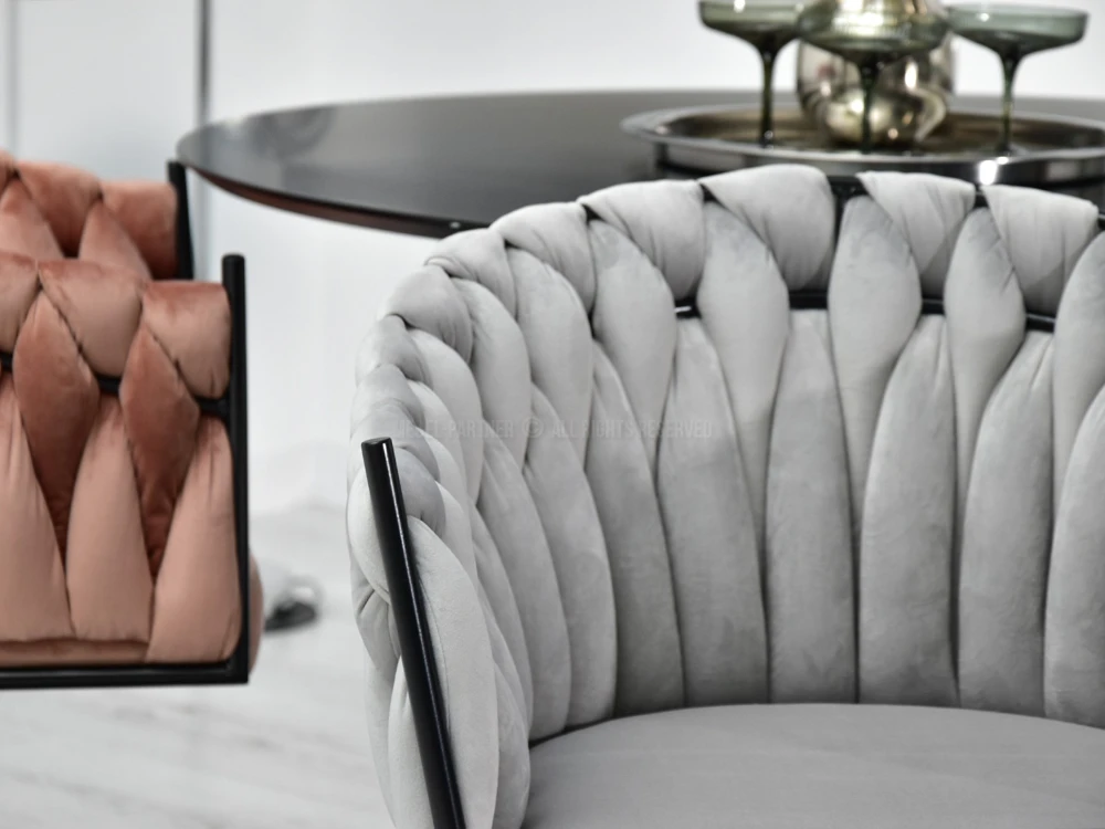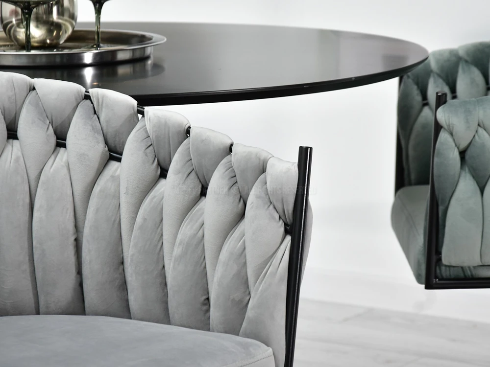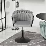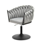 Okreten Zoe Ring se bo uspešno prilegal v notranjost klubov, kavarn in jedilnic, lepo pa bo izgledal tudi kot toaletni stol ali stol za garderobo. Da bi poudarili edinstveno obliko školjke, je fotelj prevlečen s trpežnim velurjem tipa Royal Velvet v značilni, zeleni barvi. Elegantno telo sedeža je postavljeno na nogo z okroglo nogo iz črnega prašno lakiranega jekla. Noga ima na spodnji strani plastični nastavek, ki preprečuje poškodbe podlage, montira pa se enostavno – s pomočjo štirih vijakov. Globina sedišča, nasloni za roke, možnost obračanja in nastavitve višine omogočajo udobno uporabo. Ročno izdelana pletenica okoli črnega okvirja preseneti z natančnostjo tkanja in doda edinstven značaj in lepoto stola, gledanega z vseh strani.